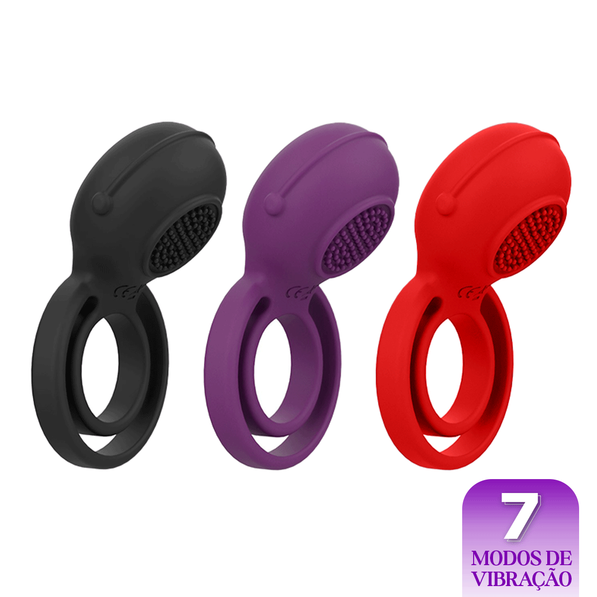 O Anel peniano duplo com cerda estimuladora para casais. Flexível, estica para servir em qualquer pênis, também retarda a ejaculação e vibra estimulando o clitóris. O anel duplo se adapta à qualquer tamanho e é perfeito para quem tem o pênis mais avantajado, pois pode usar sem incomodar.